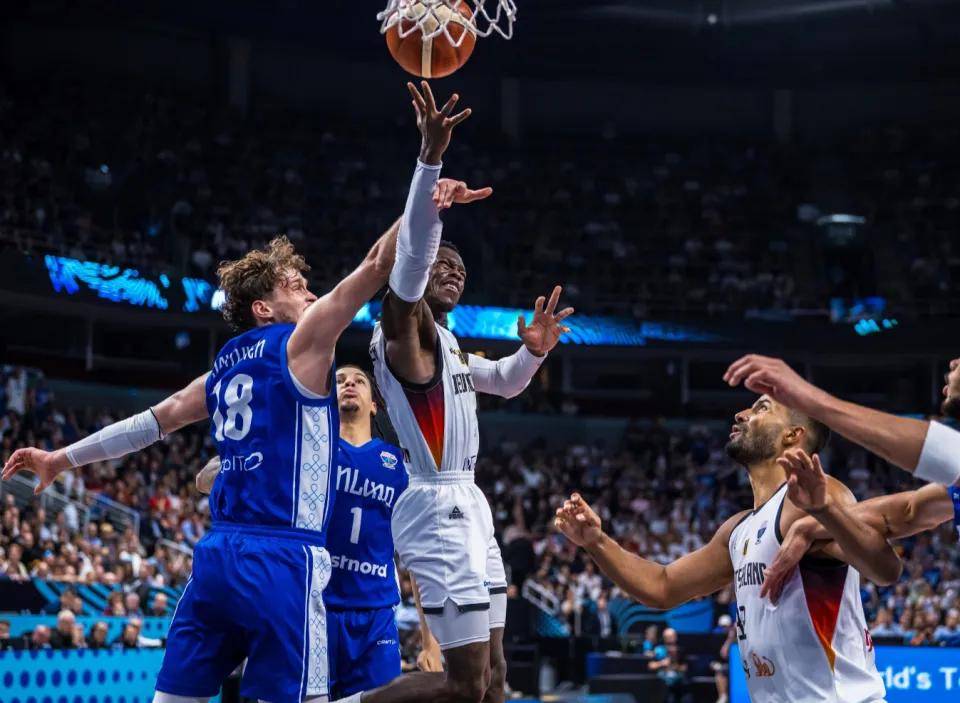 易边再战,德国队一度将领先优势保持在15分左右。然而,在第三节末段,芬兰队突然发力,马尔卡宁、杨图宁和卡姆霍亚联手砍分,在外线掀起了三分雨,将分差一度缩小至6分。关键时刻,施罗德依靠强硬的突破造成犯规,两罚全中,稳住了局势。三节战罢,德国队领先8分。