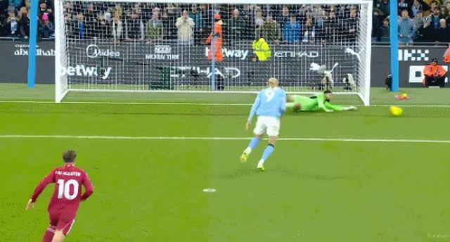 比赛开始刚第8分钟,利物浦后场出现险情,多库禁区内被马马尔达什维利放倒,随后谢尔基攻门被索博斯洛伊封堵,主裁判经VAR判罚点球,哈兰德主罚点球被扑出!