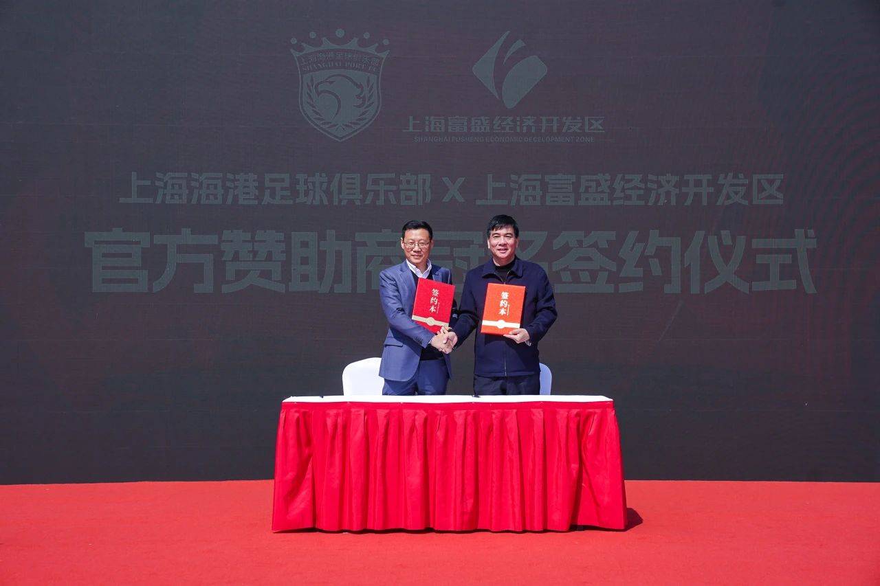 上海长兴企业集团党委委员、副总经理郁旦星和上海海港足球俱乐部总经理沙良昌在现场进行了冠名签约仪式,并共同为大家展示海港富盛经开队的主场球衣。2025赛季,球队将以位于临港的乐动力临港足球综合运动中心作为主场。